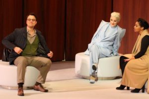 Pavel Černoch (Max), Anna Prohaska (Ännchen), Golda Schultz (Agathe) in "Der Freischütz", Bayerische Staatsoper 2021 (Foto: © Wilfried Hösl)