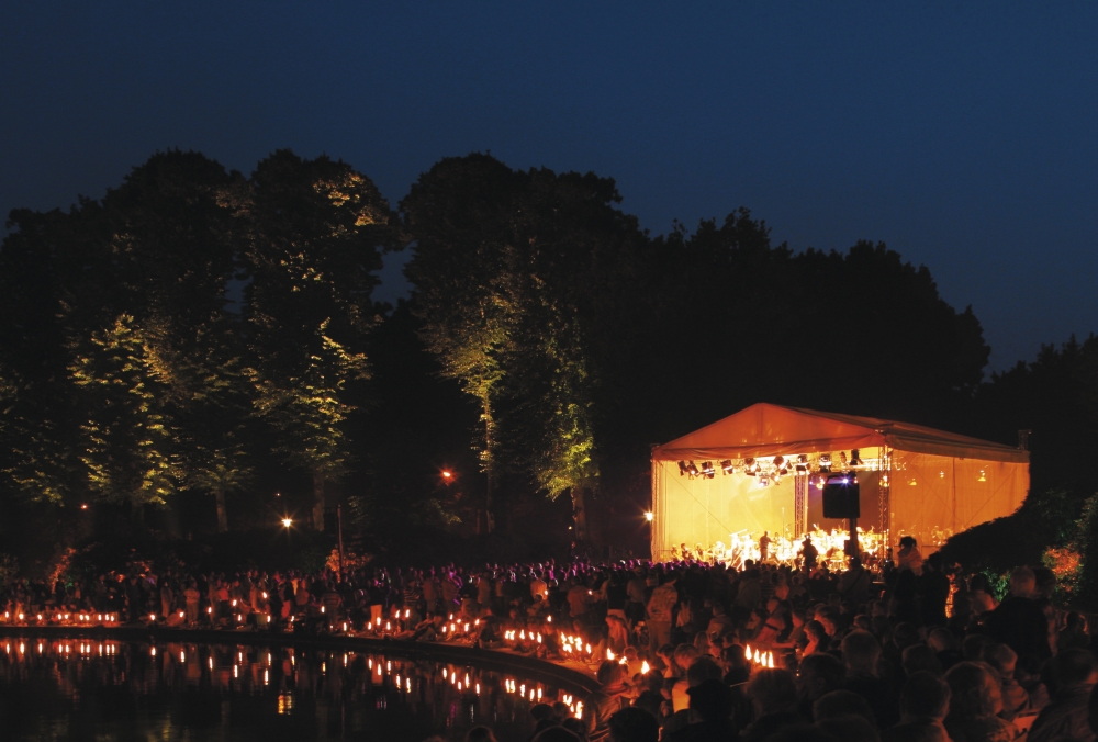 Rund 20.000 Zuhörer erlebten das Konzert "Musik und Licht am Hollersee" am vergangenen Sonntag in Bremen. Vor allem viele junge Besucher genossen die festliche Stimmung des Abends. Das Erfolgsgeheimnis des Open-Air-Konzerts, das in diesem Jahr schon zum 23. Mal stattfand, ist seine ganz besondere Atmosphäre: Beim Schein tausender Fackeln spielte das Jugendsinfonieorchester Bremen beliebte Musikstücke, diesmal vom Finalsatz der 9. Symphonie von Antonin Dvořák bis zu der Titelmusik aus "Star Wars".